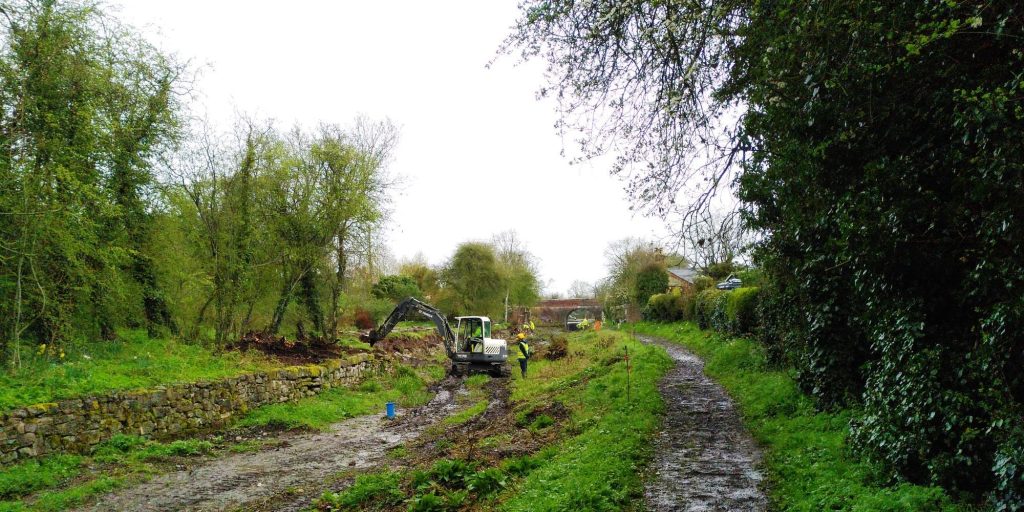 The volunteers from the Shropshire Union Canal Society are currently working on the section below Crickheath Bridge towards Pant and are preparing the area to rebuild the walls that were in a poor state of repair following decades without maintenance.